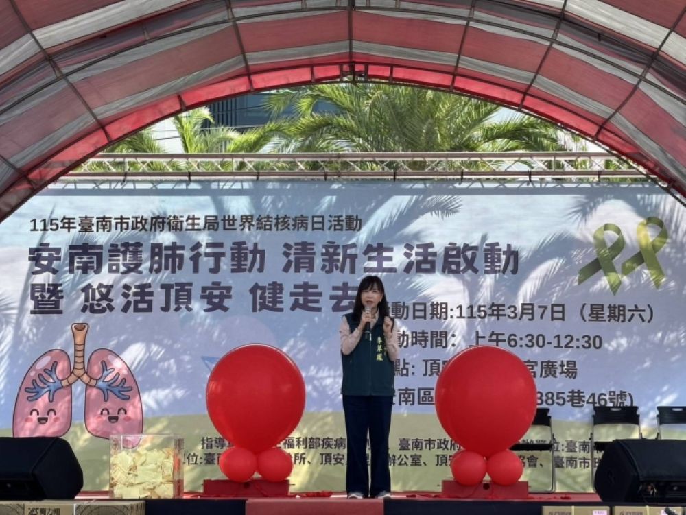 【記者王榮輝/台南報導】為響應 324 世界結核病日,臺南市政府衛生局結合安南區衛生所於7日上午在安南區保山宮盛大舉辦「安南護肺行動 清新生活啟動」宣導活動, 結核病是由飛沫傳染的慢性疾病,但只要及早診斷,並配合完善的抗結核藥物治療及都治計畫,全程由專業關懷員提供「送藥到手、服藥入口、吃完再走」的都治服務,即可完全治癒,並預防抗藥性產生。臺南市政府衛生局李翠鳳局長提醒民眾若出現「持續咳嗽超過兩週」並伴隨痰液、胸痛、食慾不振或體重減輕等症狀,應儘速就醫。