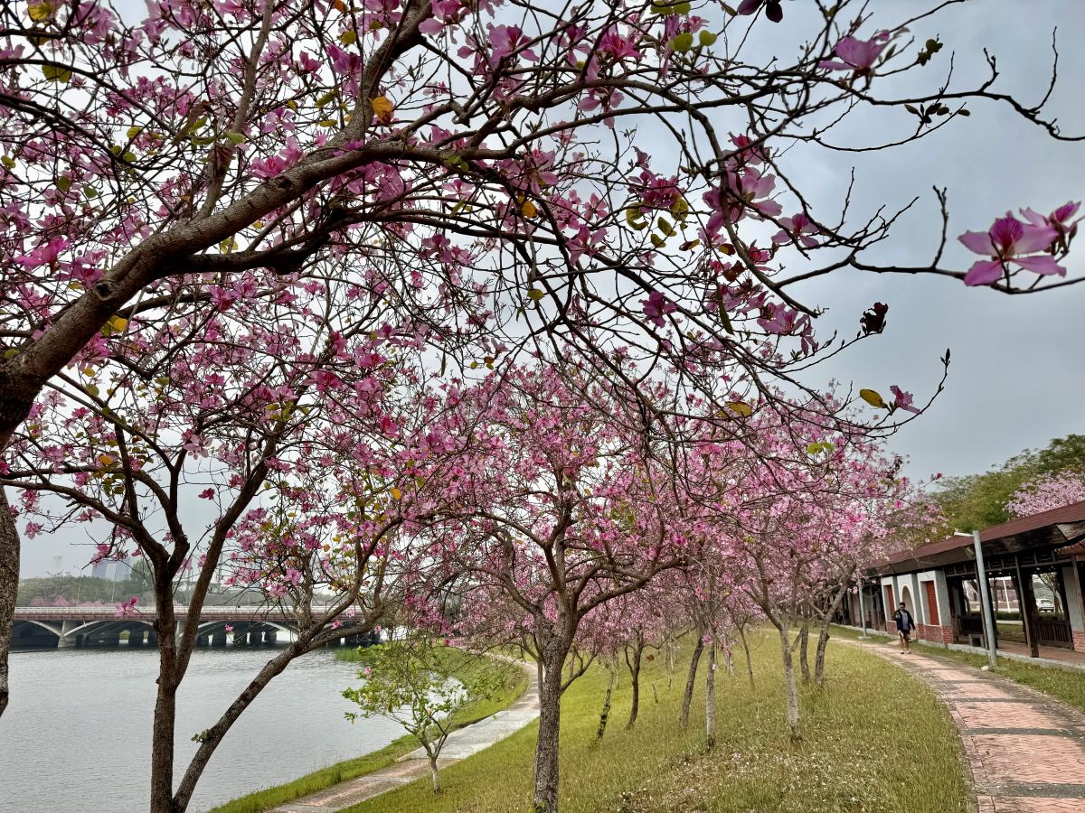 南科「粉紅浪漫」來襲!堤塘湖羊蹄甲盛開