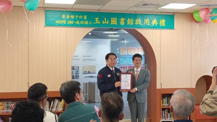 玉山金控董事長黃男州表示,中西區成功國小是臺南市繼子龍國小(112年)後所興建的第13座玉山圖書館,也是全國第200座里程碑,透過「玉山銀行黃金種子計畫」執行,由玉山志工基金會捐助,持續在臺灣偏遠地區或資源缺乏的國小捐建圖書館,提供學校圖書館視聽設備及書籍、軟硬體設施,改善國小閱讀環境,提升學童閱讀品質與閱讀風氣。