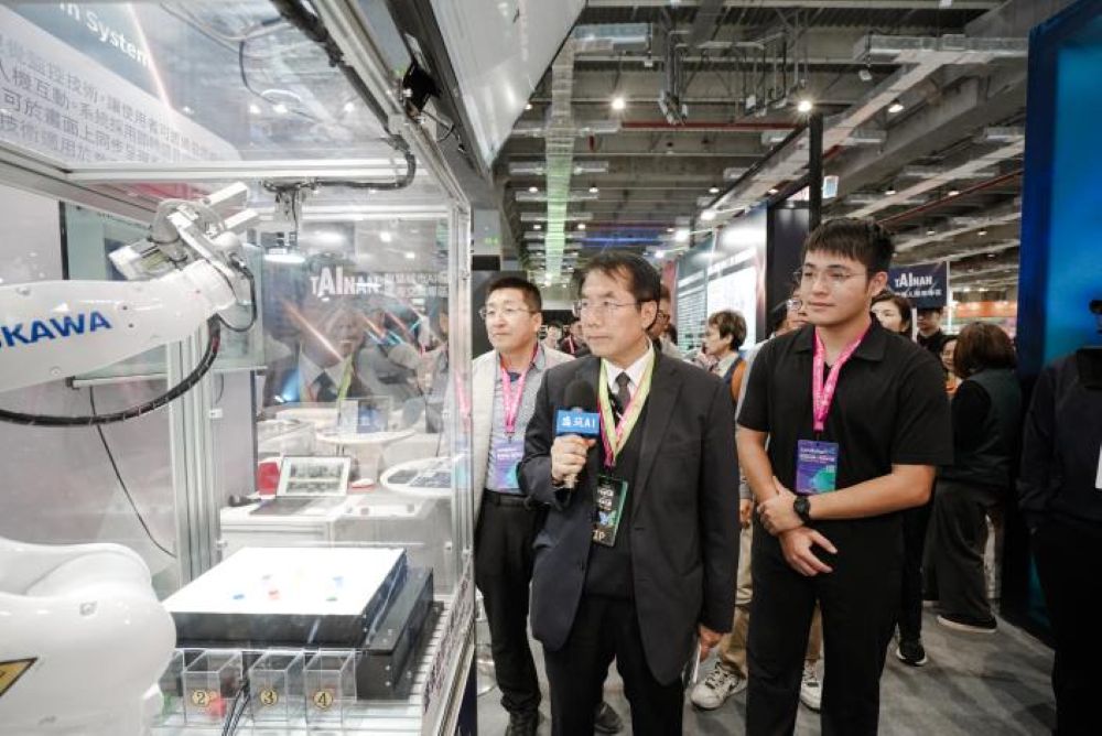 本次臺南館經發局展示亮點涵蓋智慧巡檢與導覽、智慧製造與教育、智慧交通等多元化AI創新應用場景。西格瑪機器人展示高CP值多工服務型機器人,整合LLM、RAG與VLM技術,使其具備理解語意與零樣本巡檢能力,大幅降低模型訓練成本,滿足場域內導覽、配送與巡檢之動態需求。盛筑自動化展出AI語音手臂控制系統,結合語音辨識與視覺監控,讓使用者透過自然語音指令操作機械手臂,達到直覺式的人機協作與智慧製造示教應用。瑞艦航太則呈現AI智慧航空交通管理系統,專為無人機與低空飛行器打造,整合多元感測與自動化調度功能,實現高效率的規模化機隊管理及區域空域監控,展現臺南在無人載具領域的領先布局。