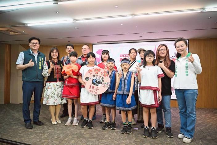 【記者黃雅愉/台南報導】2026「光影相聚・樂舞宴饗」平埔原住民族群文化節將於4月3日至4月4日在新營文化中心前廣場熱鬧登場。主辦單位於今(19)日於永華市政中心舉行活動發布記者會,邀請全國民眾於感受平埔原住民族群文化的歷史底蘊與當代風采。臺南市議員余柷青、市府徐健麟副秘書長及臺南平埔原住民族群協會代表齊聚一堂,為文化節揭開序幕。現場特別設計「花環」啟動儀式,與會貴賓將象徵祝福與文化記憶的花朵逐一插上花環,儀式象徵平埔原住民族群文化在不同世代與部落間的匯聚與連結,讓文化在當代再次凝聚與綻放。
