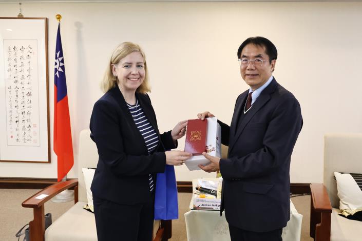 詹金斯市長表示,此為她第二次到訪台灣,非常開心能夠舊地重遊親身感受台南豐富的歷史文化與城市風貌。她指出,大林肯郡在農產、農業科技及人工智慧等領域皆具發展經驗,除誠摯邀請黃市長未來回訪外,也肯定黃市長在推動台南農業與經濟發展上的決斷力,並期盼能藉由此次交流向台南取經、深化雙方合作。