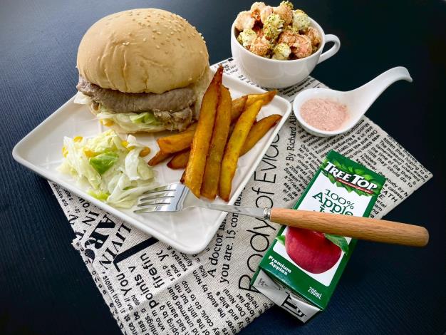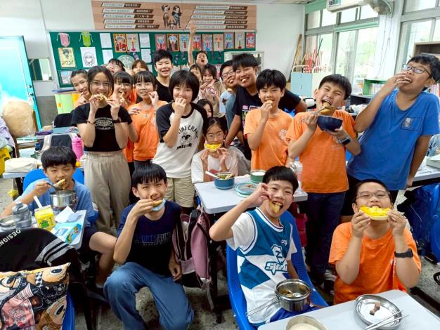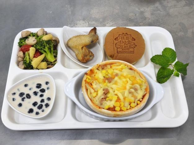 各校也發揮巧思,讓餐點成為節日亮點。永華國小由學生票選菜單,推出風味鹹甜的夏威夷披薩、外酥內嫩的燒烤雞翅與清脆爽口的青花椰,並以黑糖珍珠奶作為甜點收尾,簡單卻層次分明。仁德國小則以趣味餐點營造派對氛圍,供應豬排漢堡、玉米花椰菜與海苔爆米花,並結合當季食材,選用新化地瓜製作香甜薯條,讓孩子在輕鬆用餐中認識在地農產。
