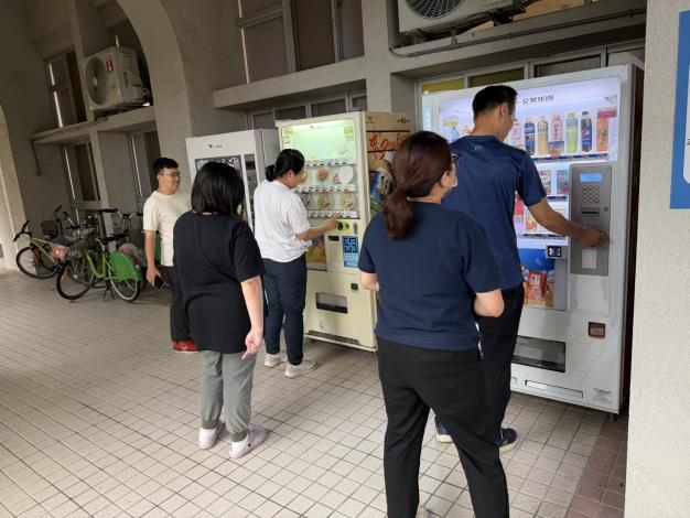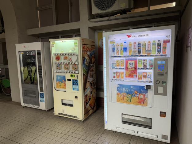 經本處持續積極洽商與溝通,最終由統一速邁自販股份有限公司同意設置,並於致遠樓一樓規劃設置3台自動販賣機,分別提供飲料、休閒食品及泡麵等多元商品,並由業者定期巡檢與補貨,確保服務品質。