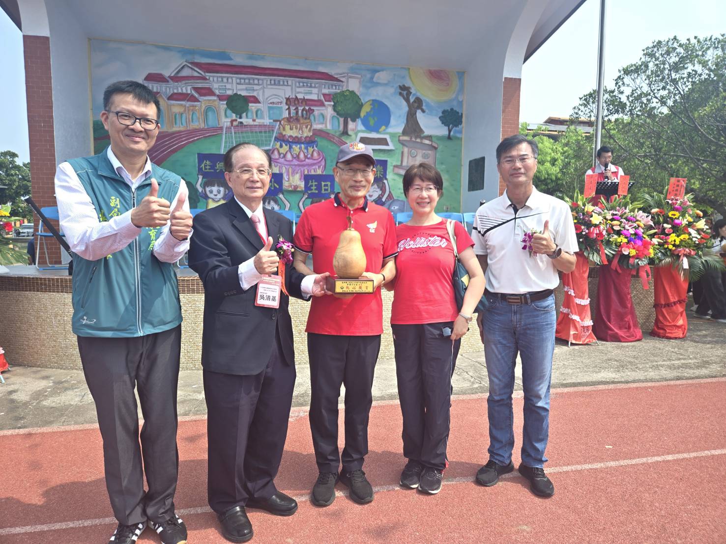 校慶籌備委員會主任委員吳清基致詞表示,黃三和校長接任佳興國小校長以來,辦學積極用心,與學區、社區家長及地方人士互動良好,充分獲得肯定與支持,帶領師生學生編輯繪本「蔗些年」,圖文並茂,娓娓訴說早期佳里興種植甘蔗盛況、甘蔗採收、五分小火車載運甘蔗情形及糖廠製糖過程飄香的蔗香味及追小火車抽甘蔗當零食的趣事,令讀者細細品味想起童年諸多回憶與趣事;另也期勉在校學弟戮力學習,知識可以翻轉人生,本校地靈人傑,古時是天興縣城所在地,110年前為麻豆公學校佳里興分校,首屆學生招收2班共42位學生,借用佳福寺廟室上課,克難興學,學子孜孜不倦,培養出部長、警政署副署長、玉山銀行董事長、高等法院法官、名律師、分局長、學校校長等各界精英,為社會貢獻所長,都是我們學習的對象。