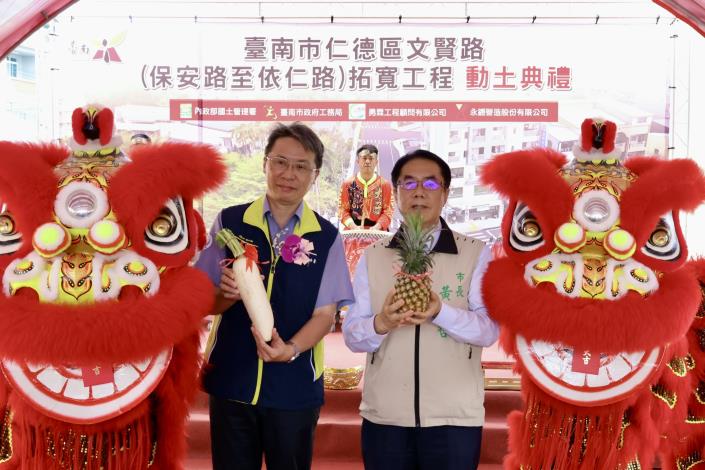 【記者黃石泉/台南報導】為提升仁德地區交通量能,台南市政府推動「仁德區文賢路拓寬工程(保安路至依仁路)」,台南市長黃偉哲今(7)日主持動土典禮,祈求工程平安順利,並期許工務團隊如質如期完工。黃偉哲表示,文賢路拓寬工程全長約2.87公里,總經費高達12.65億元,由中央補助5.88億元,市府自籌款為6.77億元,顯見地方對此重大建設的決心。他特別感謝立委及在地議員的支持,透過中央與地方合作,才能順利推動這條串連十三甲、保安、德南及中洲地區的南北向交通大動脈。