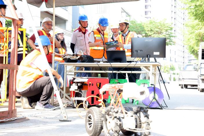 黃偉哲表示,雨水下水道建設攸關市區排水功能,其防洪成效與居民生活息息相關。市府積極推動雨水下水道系統建設,目前建設長度已達753公里,為確保人民生命財產安全,不僅完善建置,維護管理及清淤尤為重要,原本以人力進行巡檢作業,現在隨著科技發展,市府導入AI機器人及TV檢視,不僅保障工作人員安全,且有效提升準確度,增益防洪效能。