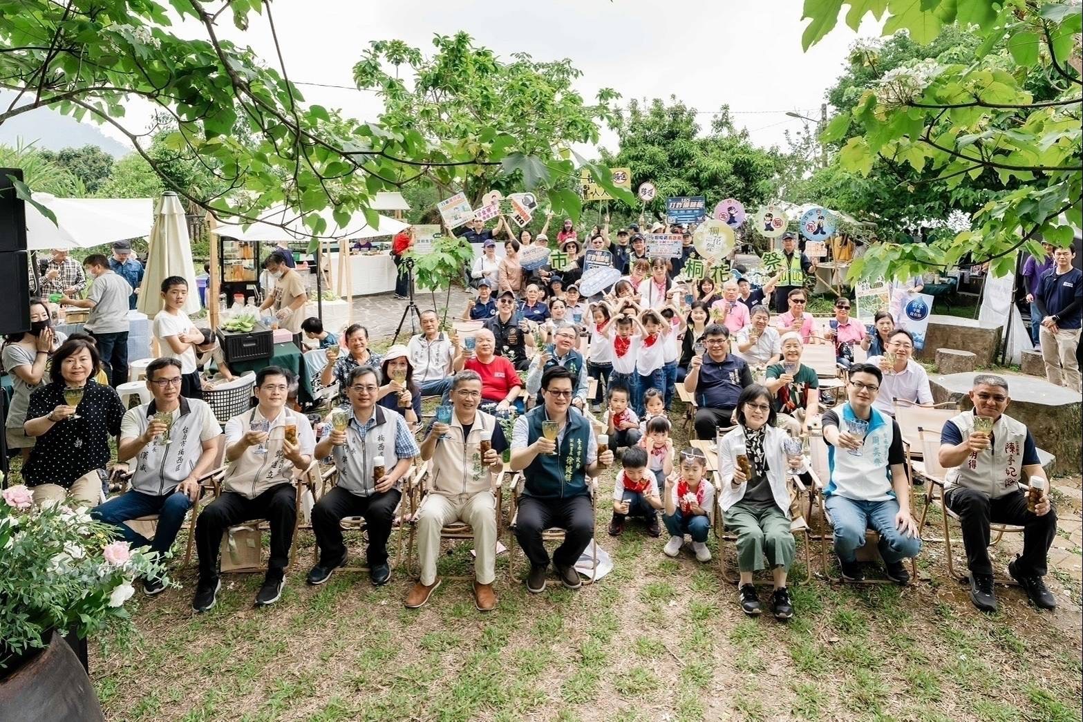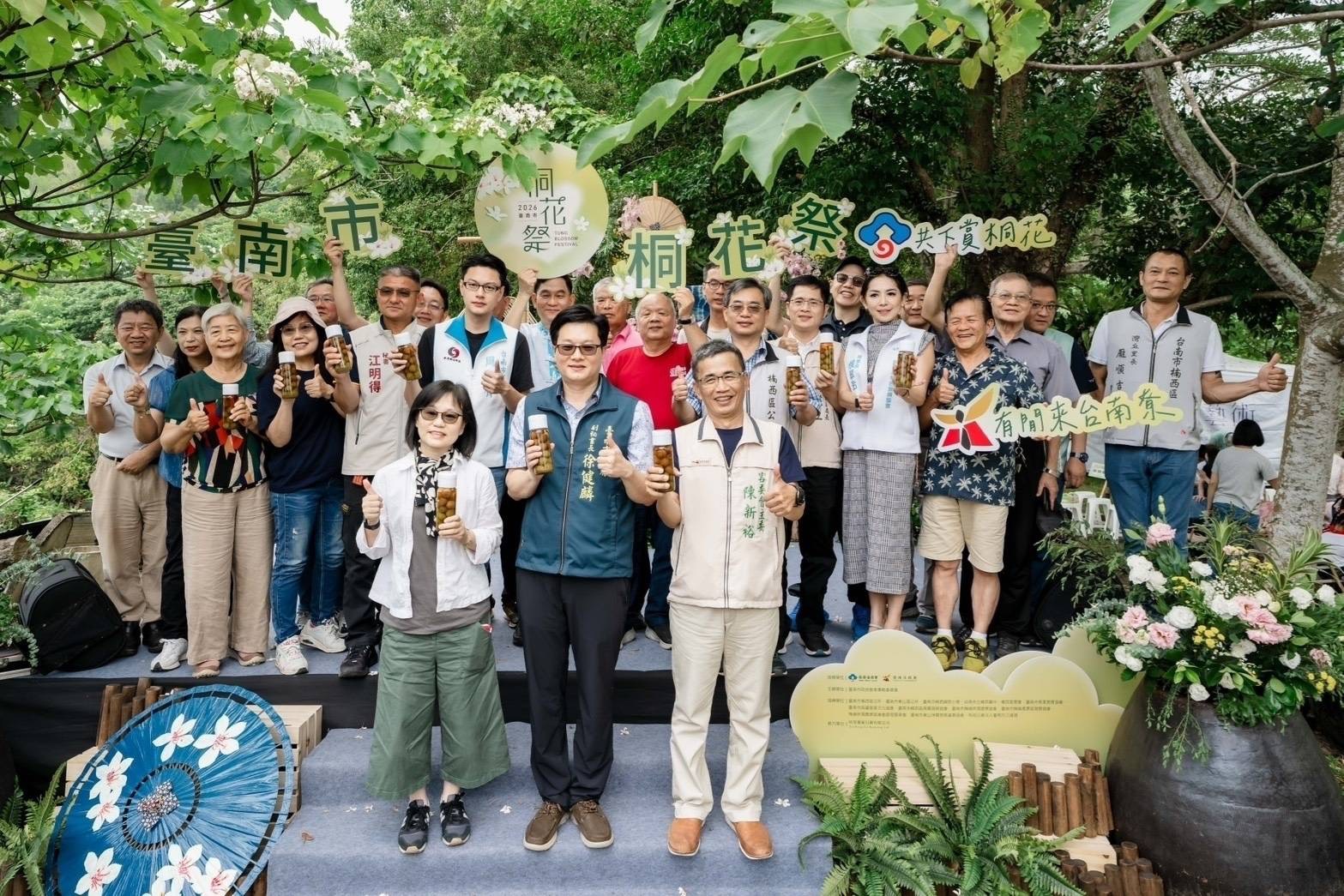 臺南市政府副秘書長徐健麟代表市長黃偉哲出席表示,特別感謝客家委員會對臺南市政府的支持,桐花已是當代客家的重要象徵,看見桐花就是看見客家!楠西梅嶺除了具備全臺最早、緯度最南的賞油地理優勢,四月也是梅子的盛產季節,青梅白桐相映成趣,在百年老梅園中賞桐花,是全臺獨有的桐花風景。客語是客家文化的核心,大家在走訪客庄欣賞桐花之餘,也誠摯邀請大家一起報名客語認證,一起講客家話。