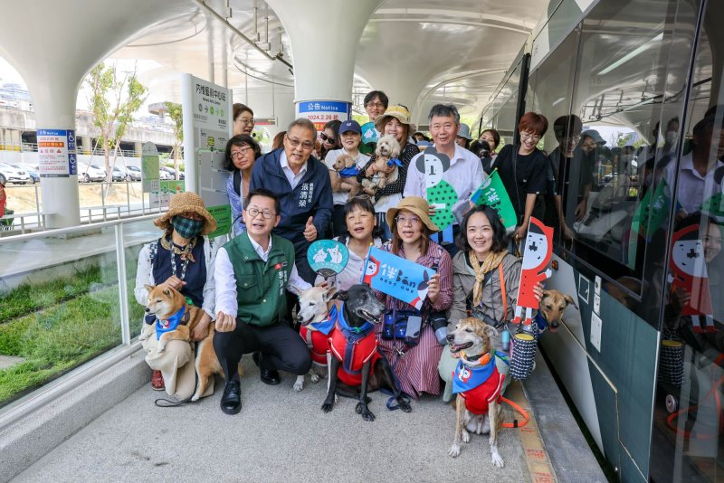 【記者王榮輝/高雄市報導】「和愛犬一起搭輕軌看展」不再是夢想!今日上午由高雄市動物保護處、高雄捷運公司、高雄市政府捷運工程局與內惟藝術中心共同舉辦「好伴車車~狗狗藝文輕旅行」,首度開放輕軌車廂讓20組毛孩家庭搭乘,毛小孩毋須裝在籠箱裡,可以全程落地,自在地跟著飼主一起欣賞沿途風景,還一同進入內惟藝術中心欣賞藝文展覽。市府秘書長郭添貴表示,4月22日是世界地球日,這次與高雄輕軌合作,以尊重及愛護動物為主題,除了鼓勵市民搭乘綠色運具外,透過「好伴bàn車車」藝文遊程專車,促進高雄觀光與寵物相關產業,讓高雄成為寵物藝文友善城市。