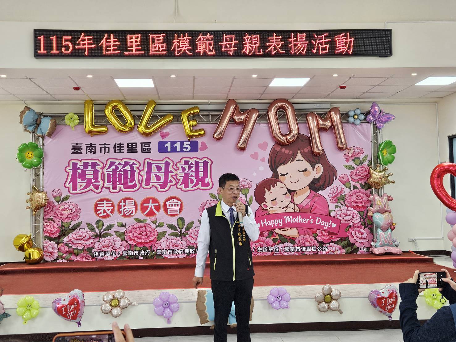 【記者田進山/台南報導】為提前慶祝5月份光輝的母親節,佳里區公所於本(4)月25日(星期六)上午9時30分,假佳里區第二聯合活動中心舉辦「115年度模範母親表揚活動」。佳里區長林耿漢代表市長黃偉哲,向辛勞付出的母親們獻上最誠摯的祝福,社會局副局長葉誌明亦到場同賀。藉由公開表揚,感謝母親們長年對子女、家庭及社會的無私奉獻,並祝福大家母親節快樂。