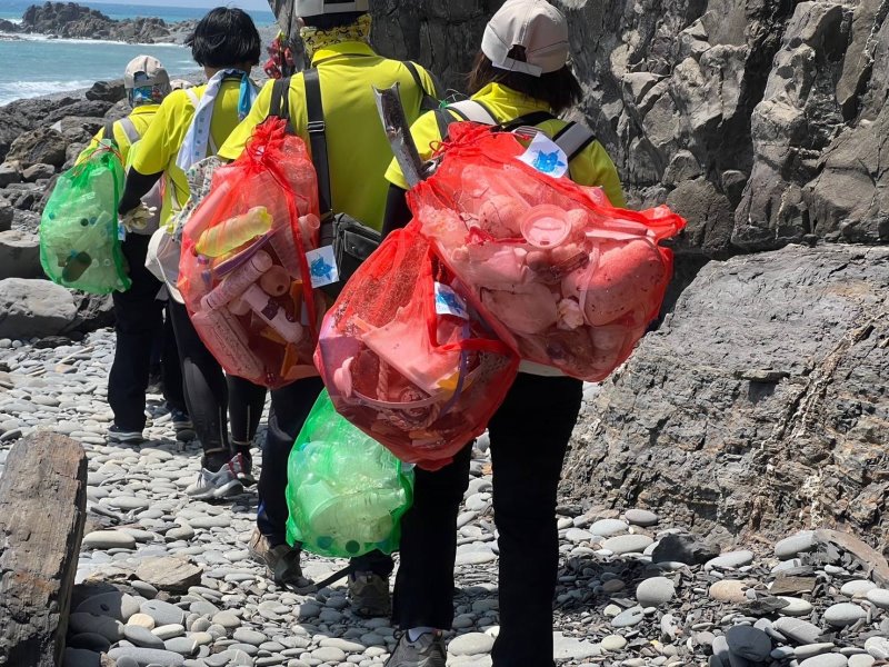 由於阿塱壹古道山路崎嶇地形陡峭,平日清理不易,故本次活動沿途將遊客遺留在山路及海漂垃圾一併清除,兩天下來徒步近6小時共清出ㄧ百多包大包的垃圾,這些垃圾有寶特瓶、塑膠袋、廢繩索等塑膠垃圾,同仁們還協力將許多卡在海灘上的陳年廢浮球、廢漁網從石縫中拔出來,再將這些重達十公斤的大型廢棄物,用人力扛回來。當地的民眾、遊客看到環保局同仁們將多年累積在海灘及山路上的垃圾扛出,都表示非常感動,並舉起雙手比讚。洪輝祥理事長也在現場為環保局同仁專業講解海洋廢棄物對於環境生態的影響,讓同仁們獲益良多,並與大家一起完成淨山淨灘艱鉅任務。