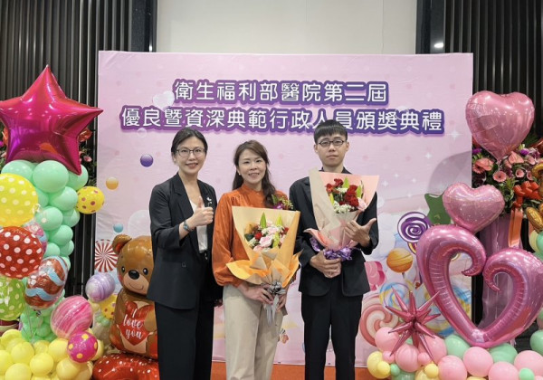 【記者田進山/台南報導】衛生福利部於4月23日舉辦「第二屆優良暨資深典範行政人員頒獎典禮」,獲獎人員由衛生福利部所屬27家醫院眾位行政人員中脫穎而出,衛福部胸腔病院行政專員李藜宜榮獲「優良獎」、庶務員林宇誠榮獲「閃亮新人獎」,得獎人用專業與熱枕的工作態度,積極認真地使醫院提升醫療服務品質及創造更好的就醫環境,不僅獲得衛福部公開表揚並足為全院同仁表率。