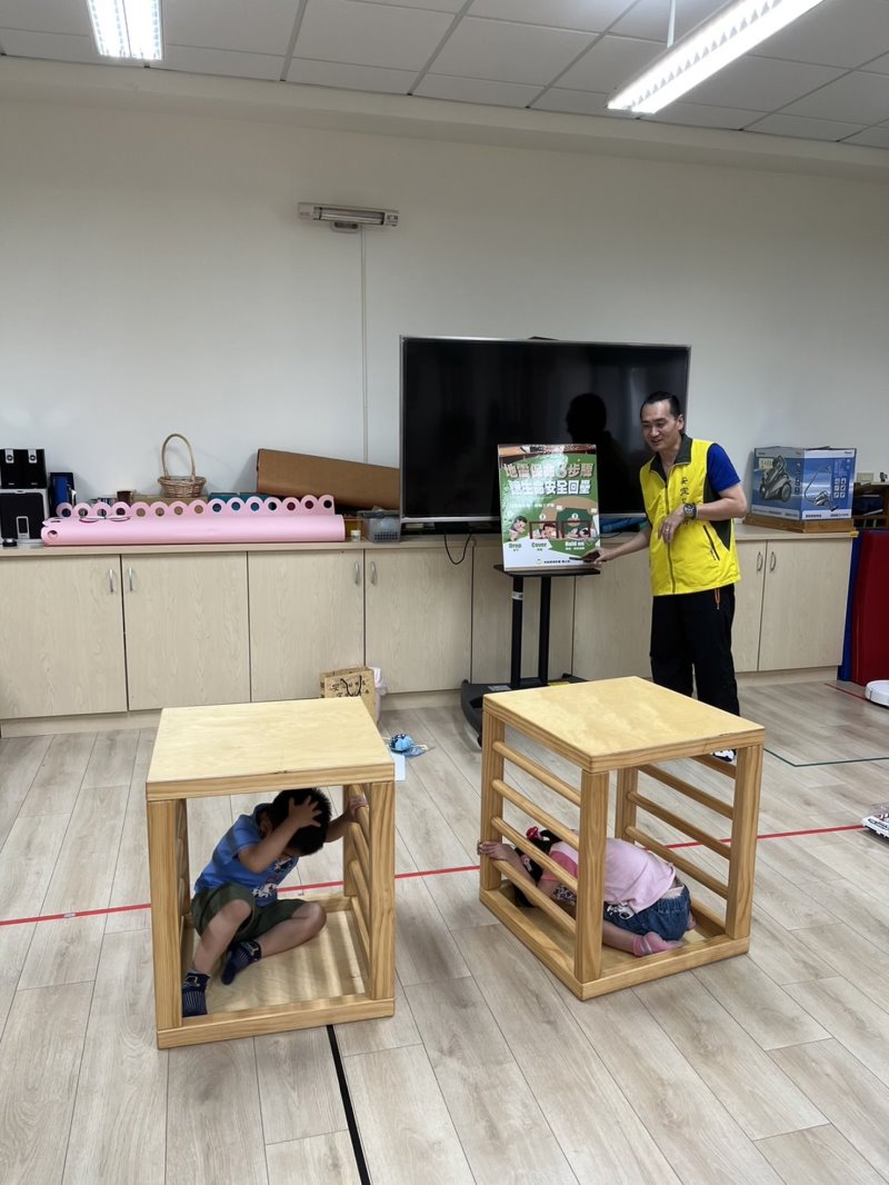 地震頻傳,防災教育向下扎根,安定區公所在幼兒園辦理學童演練。