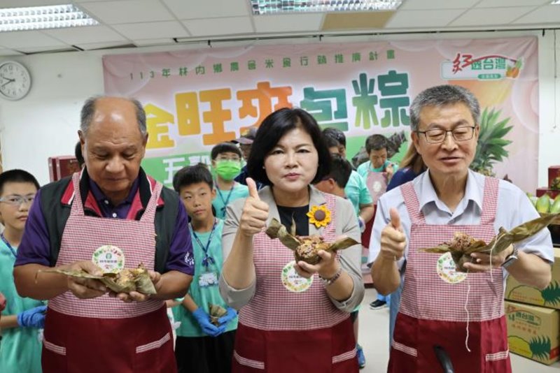 縣長張麗善表示,端午佳節即將到來,吃粽子是非常應景的,深受消費者喜愛的林內鄉農會「金旺來五穀包粽」內餡非常豐富,食材都是在地最棒的優質農產品,尤其是林內濁水溪上游的米、遠近馳名的芋頭及台農17號金鑽鳳梨,獨特的風味讓人每一口咬下都是滿滿的幸福感,自用送禮兩相宜,邀請鄉親欲購從速喔!
