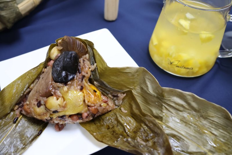 雲林「金旺來五穀包粽」包入了林內鳳梨及鬆綿芋頭,美味兼具健康,欲購從速喔! (記者陳岑博攝)