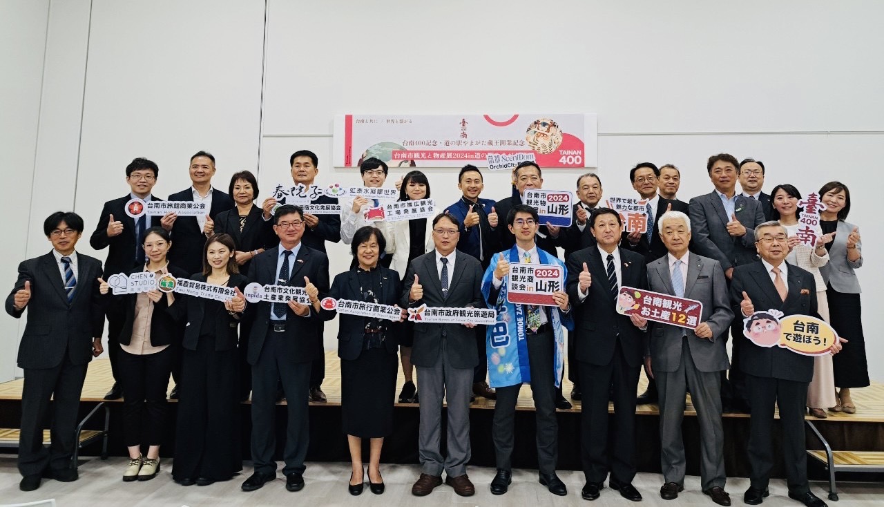 本次臺南觀光物產展由臺南市政府主辦,觀光旅遊局、經濟發展局、農業局、文化局共同協辦。觀光產業業者也熱烈響應共襄盛舉,本次訪團成員含臺南市旅行商業同業公會李佳璉監事主席、臺南市旅館商業同業公會趙博恩理事(雅樂軒臺南安平總經理)、臺南市民宿文化發展協會洪志堅理事(春院子負責人)、臺南市文化觀光伴手禮產業發展協會張慶鐘理事長、臺南市推廣觀光工廠發展協會梁雅楹秘書長(虹泰水凝膠世界觀光工廠)、蘭都觀光工廠楊智凱副總經理、享想商號(晨寓咖啡)、福農貿易股份有限公司等隨臺南市政府訪團一同出展。山形市政府由山形市井上貴至副市長親自蒞臨開幕致詞歡迎,同為本市友好城市之仙台市政府也動員赴現場參與開幕,由仙台觀光國際協會佐藤康行常務理事率員出席物產展參與活動。