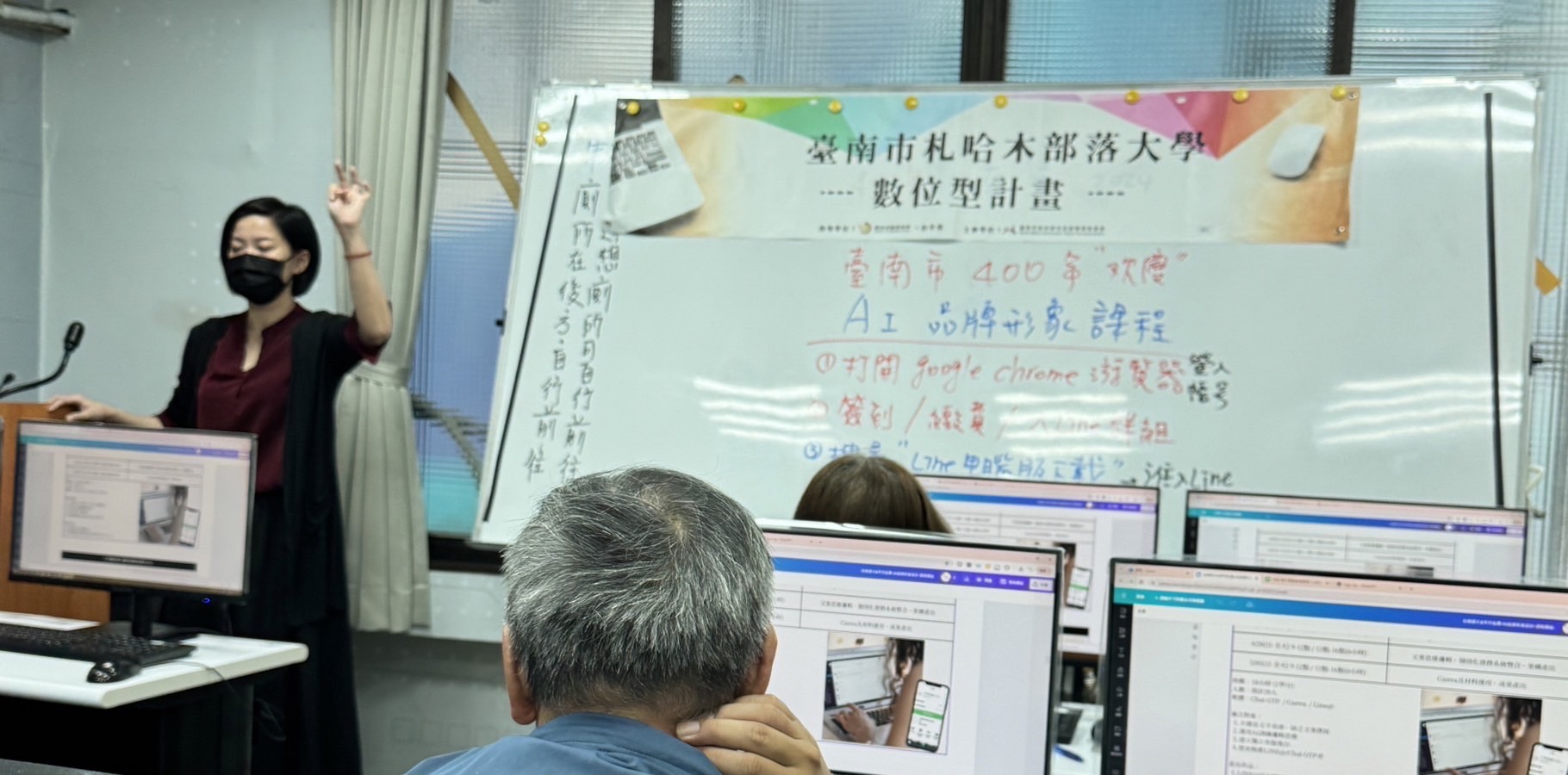【特派員侯翠玲/台南報導】臺南市札哈木部落大學為增進族人專業技能,特別規劃最符合目前社會脈動,包含CHATGPT、LINE@、Canva設計等精彩主題課程,今(27)日於聯成電腦臺南分校開課,臺南市原民會白惠蘭 Salau Kaljimuran主委平時即和同仁分享並強調掌握AI的重要性,言傳身教也來到電腦教室與族人一同學習。