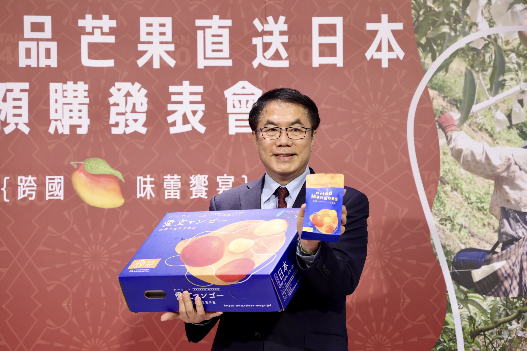 台南市政府攜手「微風超市」鎖定日本消費者最愛的台南玉井愛文芒果,推出「品味極致台南」預購直送日本服務,預購記者會今起開跑