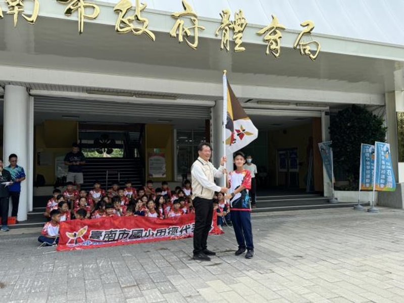 【記者黃石泉/台南報導】113年全國小學田徑錦標賽將於5月15日至16日在雲林縣立田徑場舉行,臺南市將派出來自25校共50名選手參賽,為了勉勵臺南小選手旗開得勝,今日(13)在永華體育場由體育局陳良乾局長授旗予永信國小黄尚頡,臺南市體育總會吳秋林秘書長、田徑委員會副主委郭祝府及總幹事林惠珍等委員會幹部們亦到場致贈加菜金、能量棒等,期許小選手們都能突破佳績、為臺南爭光。