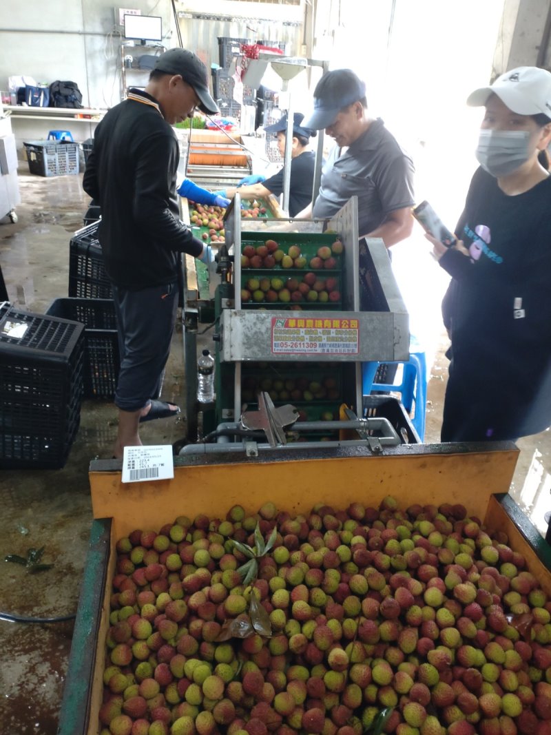 位在大樹區的芳境合作社,是當地最早投入冷鏈設備者,自106年開始在農業試驗所的輔導下,與屏東科技大學技術合作,慢慢建立起現在的冷鏈管理系統。現任的理事主席-許倫肇先生表示「我們採收的玉荷包,不像一般市售帶枝條的荔枝,農民送到集貨場是要粒粒分明的。」「用粒仔採收,除了方便我們後續分級選別,更重要的是有利果品的預冷處理。」農民採收後的玉荷包,送到集貨場,經過秤重過磅後,第一個關卡就是透過次氯酸水清洗機,消毒清洗外皮;再來重量分級選別後,就將果實送入預冷庫,去除田間熱。最後依客戶訂製的規格包裝後,放置10℃冷藏庫等待出貨。許倫肇說:「在還沒有冷鏈管理之前,採收後送到消費者手上大約只有5-7天的保鮮期,之後就會開始褐變。現在,至少有20天都沒有問題。」「目前芳境合作社的玉荷包最遠的客戶是在加拿大,由於合作社有導入冷鏈物流管理,所以從產地送到加拿大的超市販售一周內,品質及外觀都和現採的一樣。」