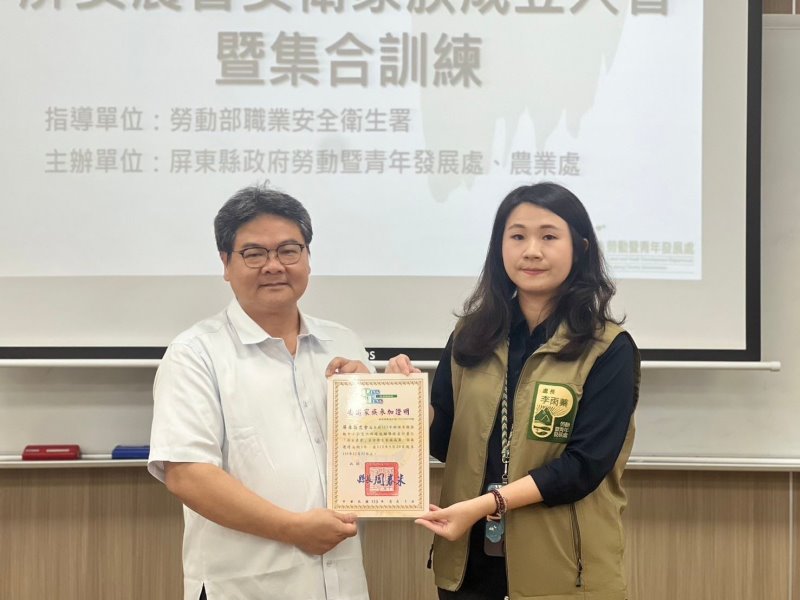 屏東縣政府勞動暨青年發展處攜手合作成立以農民團體為主的安衛家族(記者黃石泉攝)