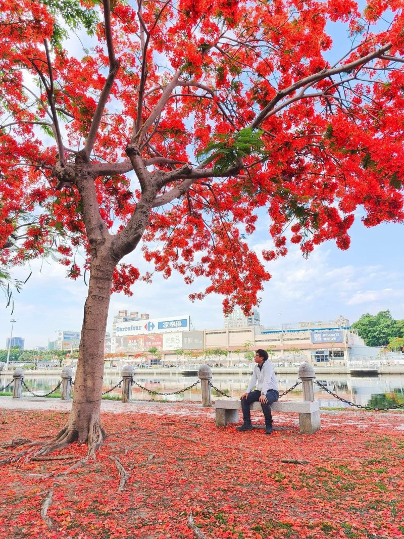 【記者黃石泉/高雄市報導】四季更迭,立夏已過,有「南國美人」稱號的鳳凰花陸續綻開,滿樹焰紅似火的花朵,有如紅色蝴蝶在高雄街頭巷尾翩翩飛舞,美不勝收。壽山、鹽埕區公園路、愛河河畔、時代大道、中華一二路、橋頭區成功南路、甲仙區忠孝路、鳳山區水映公園、鳳山公園、前鎮區星光水岸公園、三民區雙湖森林公園等地,盛放的鳳凰花正一展燦爛風華。