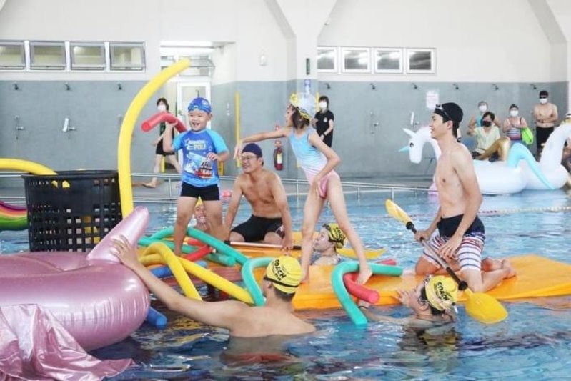 本次永華國民運動中心端午划船競賽,參加對象需4歲以上,每個隊伍由親子1大1小組成,共有保持平衡、精準投擲、網羅目標及全力衝刺等4道關卡,比賽精準度、速度和親子默契,活動也包含水中安全宣導,並全程有工作人員及救生員指導,保護大家的安全。
