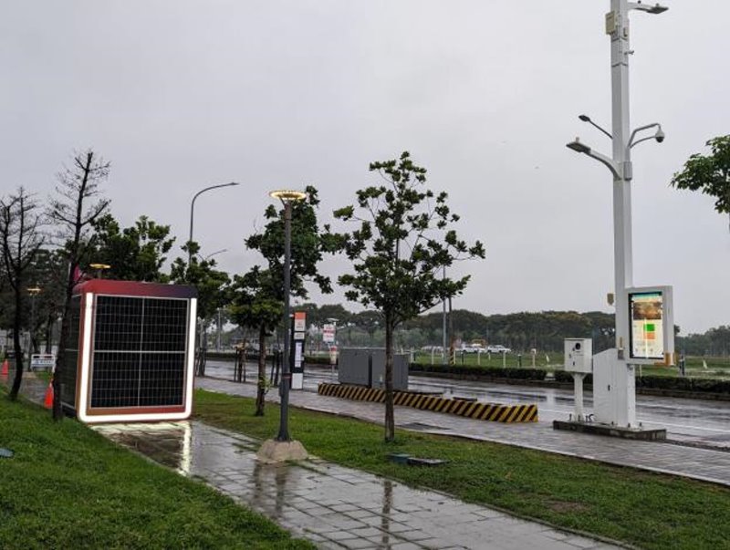 國內首座綠能供電智慧杆將自6月7日起在大台南會展中心前進行驗證示範(記者廖啟舟攝)