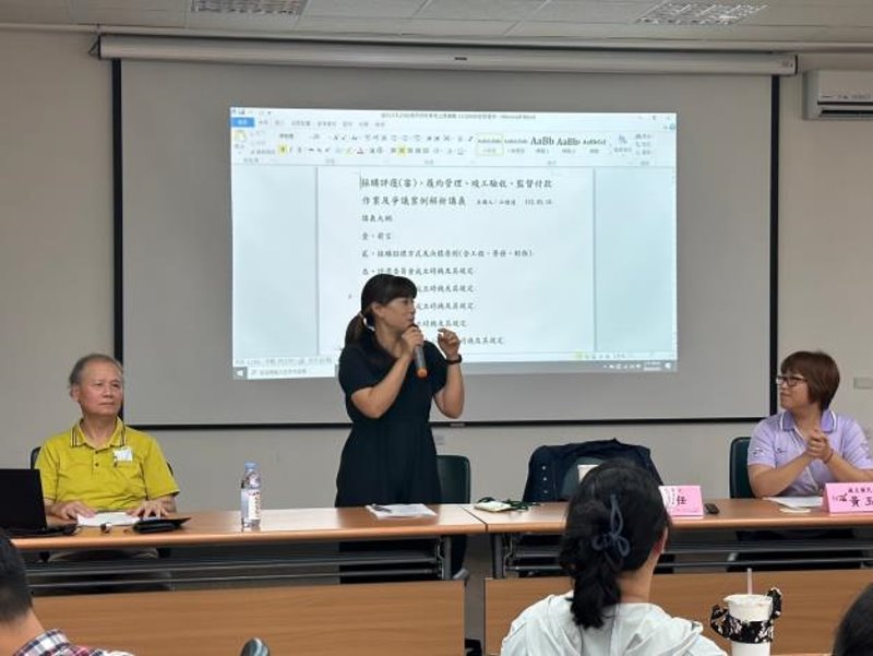 政風室主任陳瑩提到,學校辦理採購的同仁在參加過政府採購法課程後,實際辦理採購過程中如遇困難,通常會向其他學校詢問過往處理經驗;然而他校的處理方式未必能精確解決問題,希望通過江健達老師的實務經驗,強化同仁正確的採購流程觀念並提供實務困境的建議處理方式。