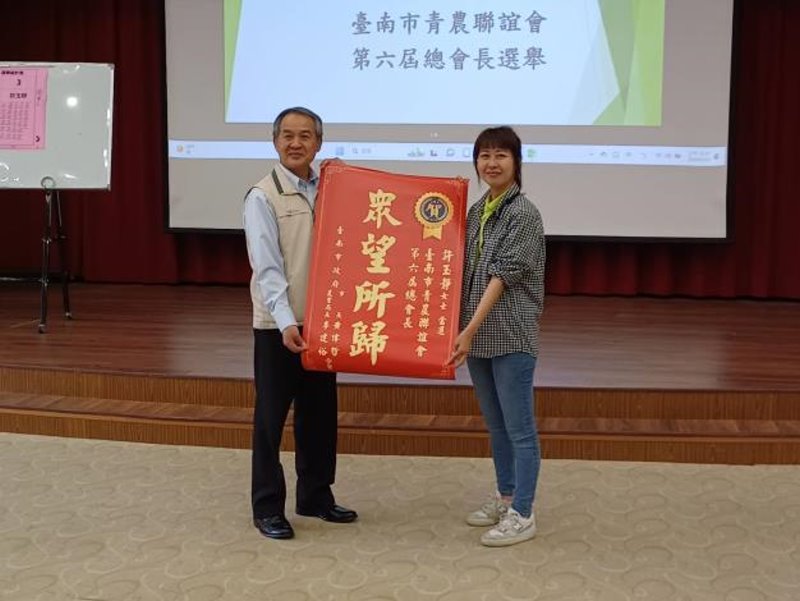 農業局表示,成功當選連任的總會長許玉靜畢業於長榮大學經營管理研究所,原於市區工作任職於顧問公司,八年前返鄉務農,建立「小善心農場」品牌,從父親第一代種植的慣行農業,轉型推動有機驗證及產銷履歷生產及銷售,並改變農場經營模式轉做「訂單式生產」的農場,透過不斷調整產銷模式,成功拓展知名度並穩定通路。