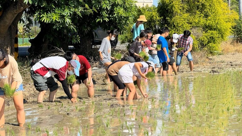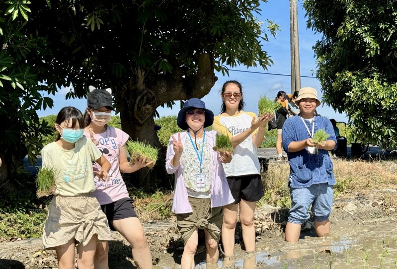 南市安佃國小學生與國際志工攜手體驗在地插秧課程,深化食農教育理念