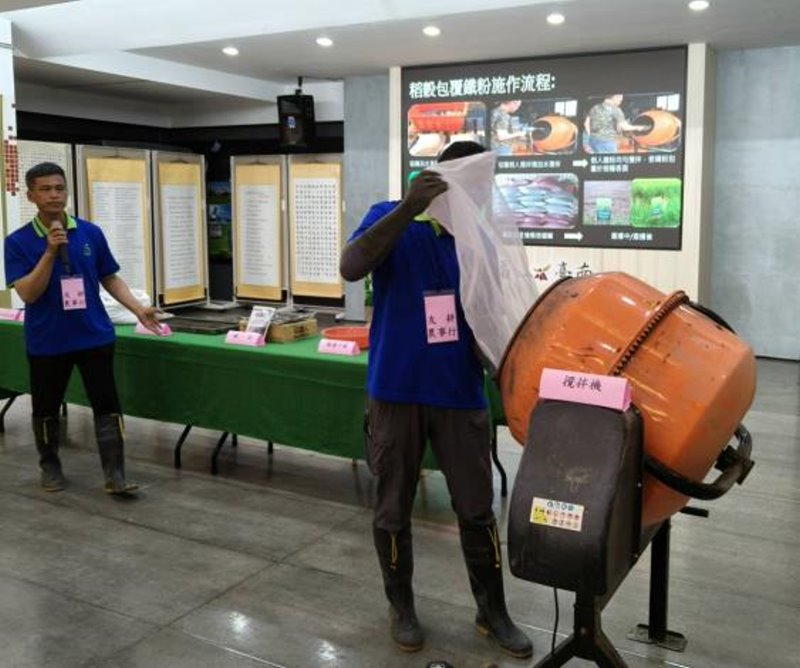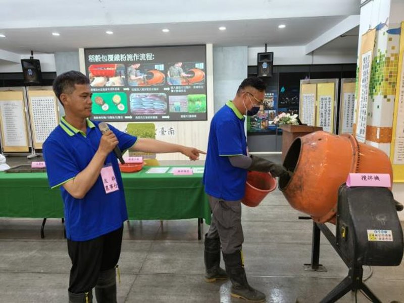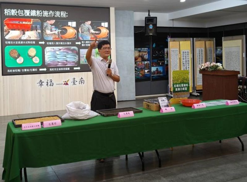 台南區農業改良場協助試辦「稻穀包覆鐵粉」新技術食安心農放心(記者陳岑博攝)