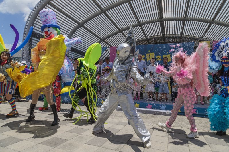 科學教育中心表示,今天也邀請YOYO家族天竺鼠姐姐、兆群表演團隊、紅鼻子馬戲團及宇藝表演娛樂特色舞團相繼登場,各式外星人登場秀、小丑雜耍、魔術表演,氣氛熱鬧不斷,也讓孩子們紛紛上前互動。