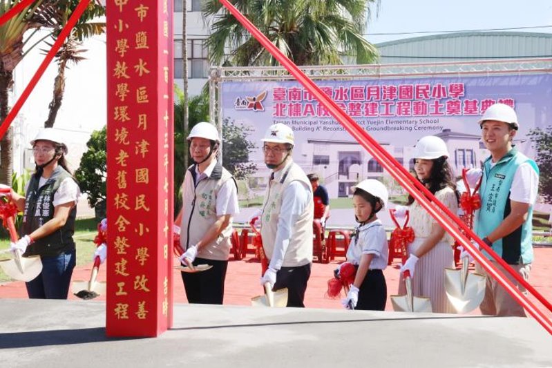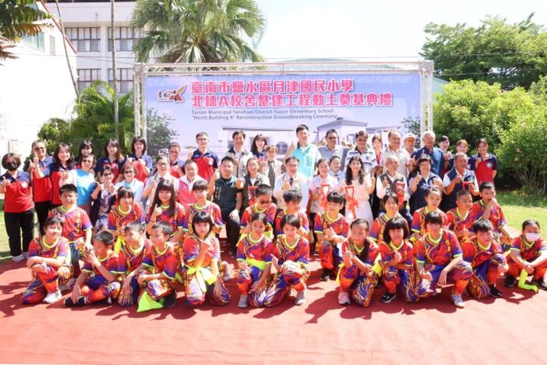 【記者田進山/台南報導】台南市鹽水區創校已有80年歷史的月津國小在今年0403地震中部分校舍毀損,市府為讓學童有更佳學習環境,率先動支災害準備金辦理重建,今(10)日北棟A校舍整建工程動土典禮在學生台灣獅隊鑼鼓喧天的精采演出與社區家長的熱情祝賀聲中揭開序幕,市長黃偉哲及議員王宣貿、沈家鳳、李宗翰、蔡育輝蒞臨見證,預計114年11月完工。