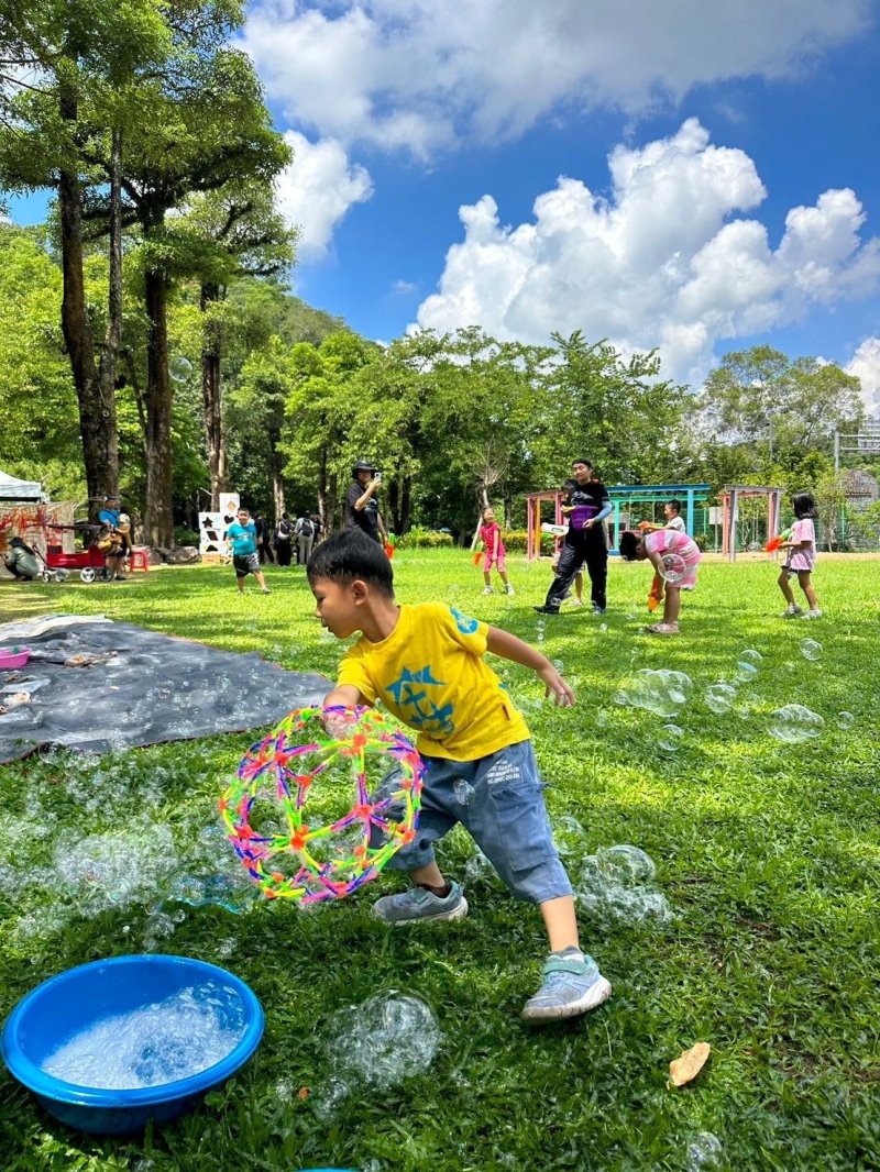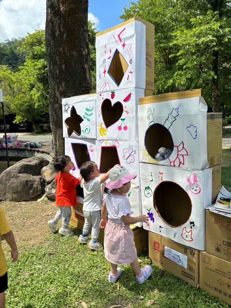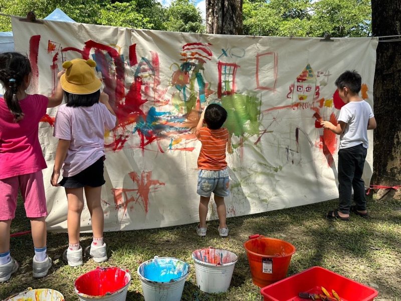 活動現場,家長與小朋友一同跳原住民節慶八步舞與現行流行16蹲舞步,人人一把水槍大賽,炎炎夏日沁涼一下,不僅加深親子同樂趣,也串起不同家庭間同伴遊戲的樂趣。看見孩子在捏泥巴的過程,隨手撿取樹葉裝飾起來;攻佔堡壘雙方對戰時,家長成為最棒的軍師,看著孩子盡情揮舞大大小小泡泡,家長也像回到孩童般天真爛漫,令人動容,玩得不亦樂乎。