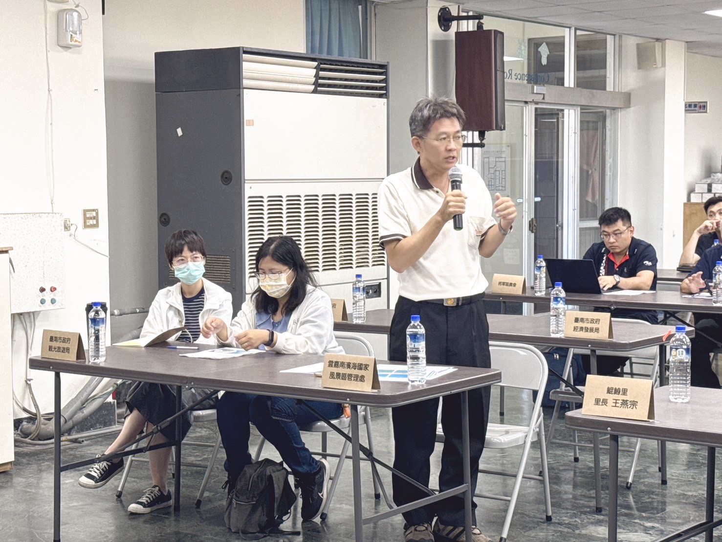 今日上午的地方共識凝聚會議,受到各界關注,轄區內有賴惠員立法委員服務處周麗那秘書、陳昆和市議員、蔡秋蘭市議員、蔡蘇秋金市議員、謝舒凡市議員、方一峰市議員服務處李寶桐助理出席,此外,立法委員林俊憲服務處林鴻志秘書也特別到場關心;濱海四里的鯤鯓里王燕宗里長、鯤溟里周吉明里長、平沙里吳志凱里長、長沙里陳啓瑜里長均全程參與;另外,多年來也在將軍區發展觀光的中央單位交通部觀光署雲嘉南濱海國家風景區管理處吳宗青秘書亦一早到場;臺南市政府相關局處(觀光旅遊局、農業局、漁港所)均指派代表參與了解;此外,在地農漁會、宮廟、學校、公協會及觀光產業業主等共約50位踴躍出席。