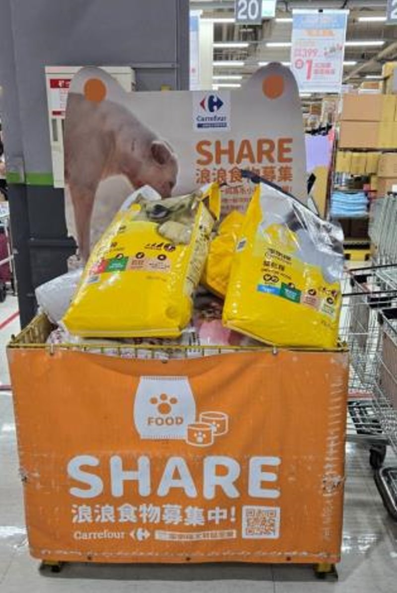 家樂福臺南地區現階段所有量販門市中皆設有「募集犬貓飼料花車平台」專區,民眾可直接於家樂福內購買犬貓食品或捐贈家中寵物食品放置花車之上,待花車上物資滿載,家樂福便會通知動物之家前往載運,每一份民眾的愛心都將直送動物之家,112至113年6月底止,由此平台共收到約22.6公噸飼料。另民間企業知名飼料品牌-希爾思寵物營養有限公司以及法國皇家寵物食品公司亦不定期捐贈飼料,使得收容所約有1,200多頭毛孩可以享用到不同口味的飼料。除了收到上述平台食品捐贈外,也會收到民眾及企業捐贈的其他物資,例如小零食、毛毯、貓抓板、貓砂、籠子等,讓毛孩們單調的收容生活也可以盡情享受其他樂趣。