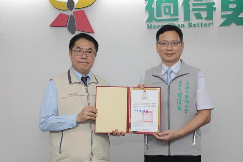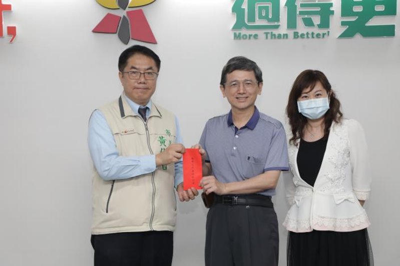 南市實施登革熱定點醫師監測網通報黃偉哲頒發獎勵金(記者田進山攝)