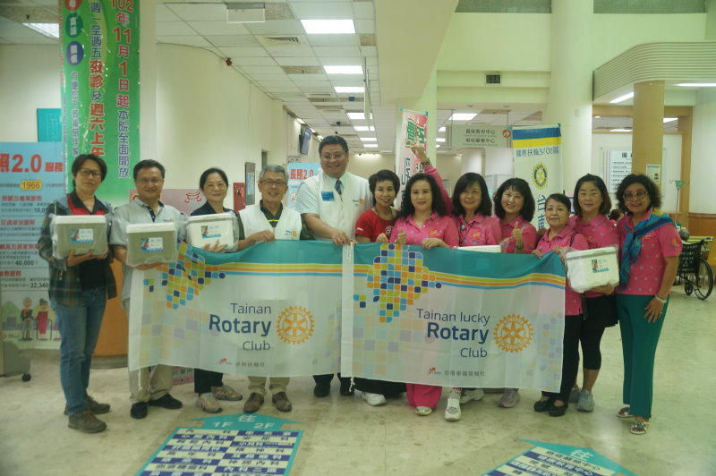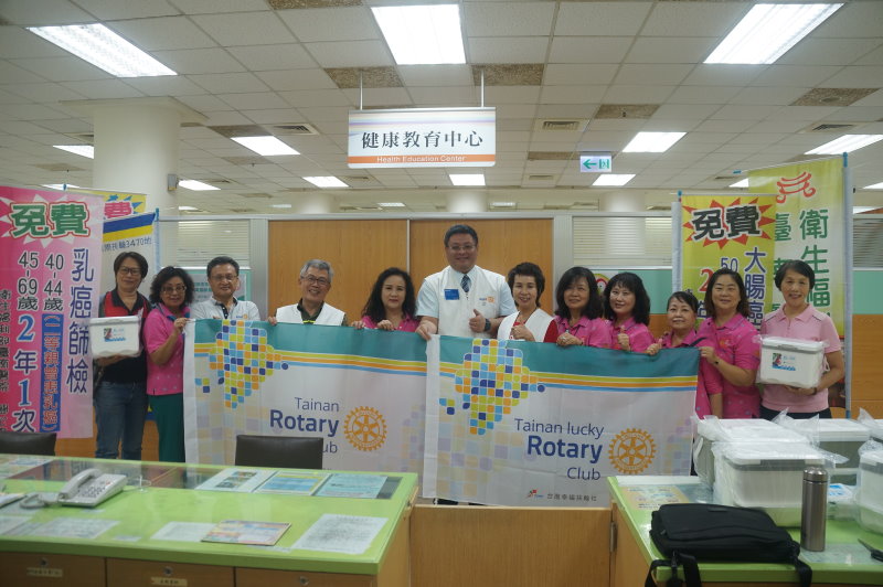 3470地區林庚賢總監(左五)蒞臨在臺南醫院辦理的首場「粉紅無懼愛自己-婦女乳癌篩檢計畫」(記者黃石泉攝)