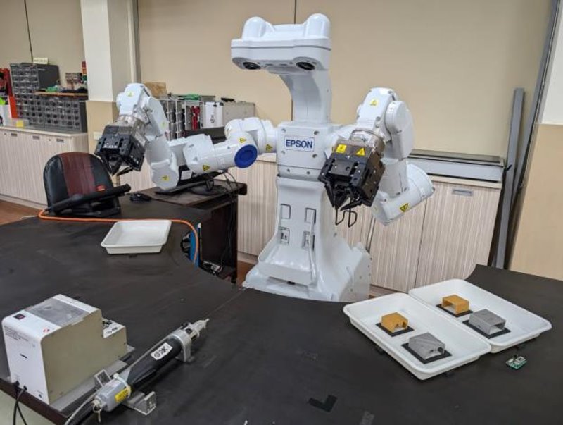 陳國泰副教授則以北部企業包車來崑山科大上課為例,因為智慧機器人系有大多數廠牌的機械手臂,並成立各類型的培訓機台。不論未來學生就業的公司使用EPSON、FANUC還是本土品牌上銀的機械手臂,在學校內可以先上機練習,從硬體零件到軟體操作,以及後續的證照取得,都可以在學校一站完成。此外,近年也更重視數位孿生的規劃,例如在企業建廠前,就先在虛擬環境中用AI模擬生產過程,將各環節的問題排除後再規劃產線,可大幅降低企業試誤的成本。