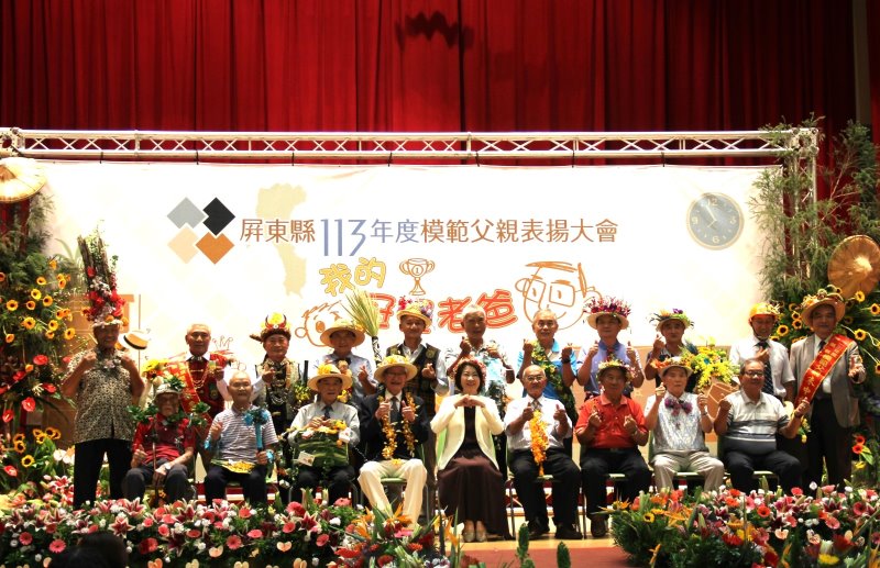 縣府與中華民國花藝設計協會屏東縣分會,依模範父親的職業設計專屬花藝裝扮,邀請20位模範父親帥氣走秀。模範父親們展現屏東父親自信魅力的一面,有家人在台下拿手舉牌為父親加油,更有女兒大喊「爸爸我愛你!」場面熱鬧溫馨。