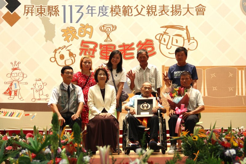 接受表揚的模範父親,包含各鄉鎮市公所、寄養家庭及身心障礙團體推薦。年紀最長的是來自長治鄉將屆百歲的董恭七,自幼於逆境中成長,培養出堅毅不怕苦的硬漢精神,平時克勤克儉,用心經營家庭,極為注重子女的教養,子女言行也深受父親啟迪,現都成家立業且家庭圓滿。
