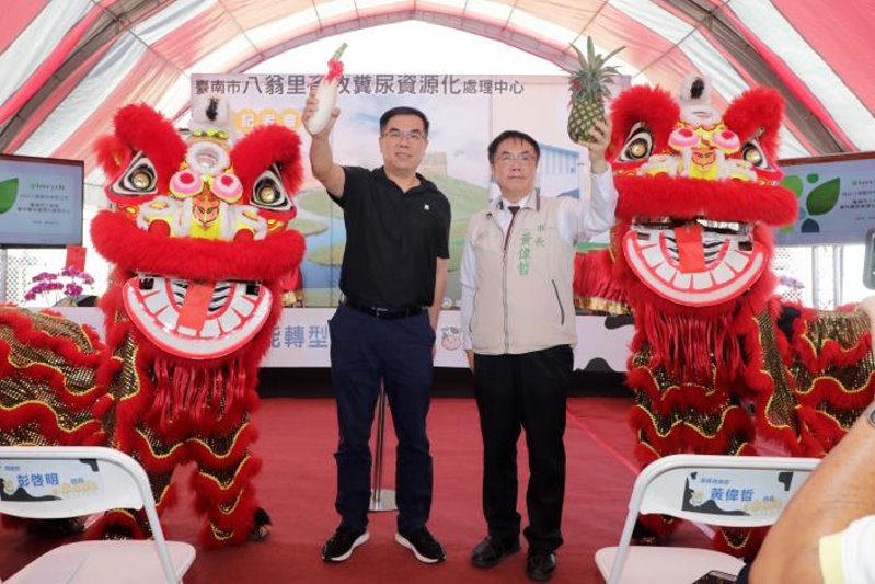 市長黃偉哲表示,今日全臺及臺南第一座的畜牧糞尿資源化處理中心啟用,是非常不容易且化不可能為可能的工程,由於八翁里是全國最大酪農區,畜牧廢棄物排放不但造成地方社區及畜牧業者關係緊張,也對環境產生影響。經過環境部全力支持,南市府攜手業者齊心努力成立畜牧糞尿資源化處理中心,採用全國首創乾式及濕式厭氧消化法處理畜牧廢水,能化垃圾為資源,讓畜牧污染變黃金,變成綠色能源,不僅增加經濟上誘因,也讓環境損害降低,未來將看到排水溝及河川變得更乾淨。
